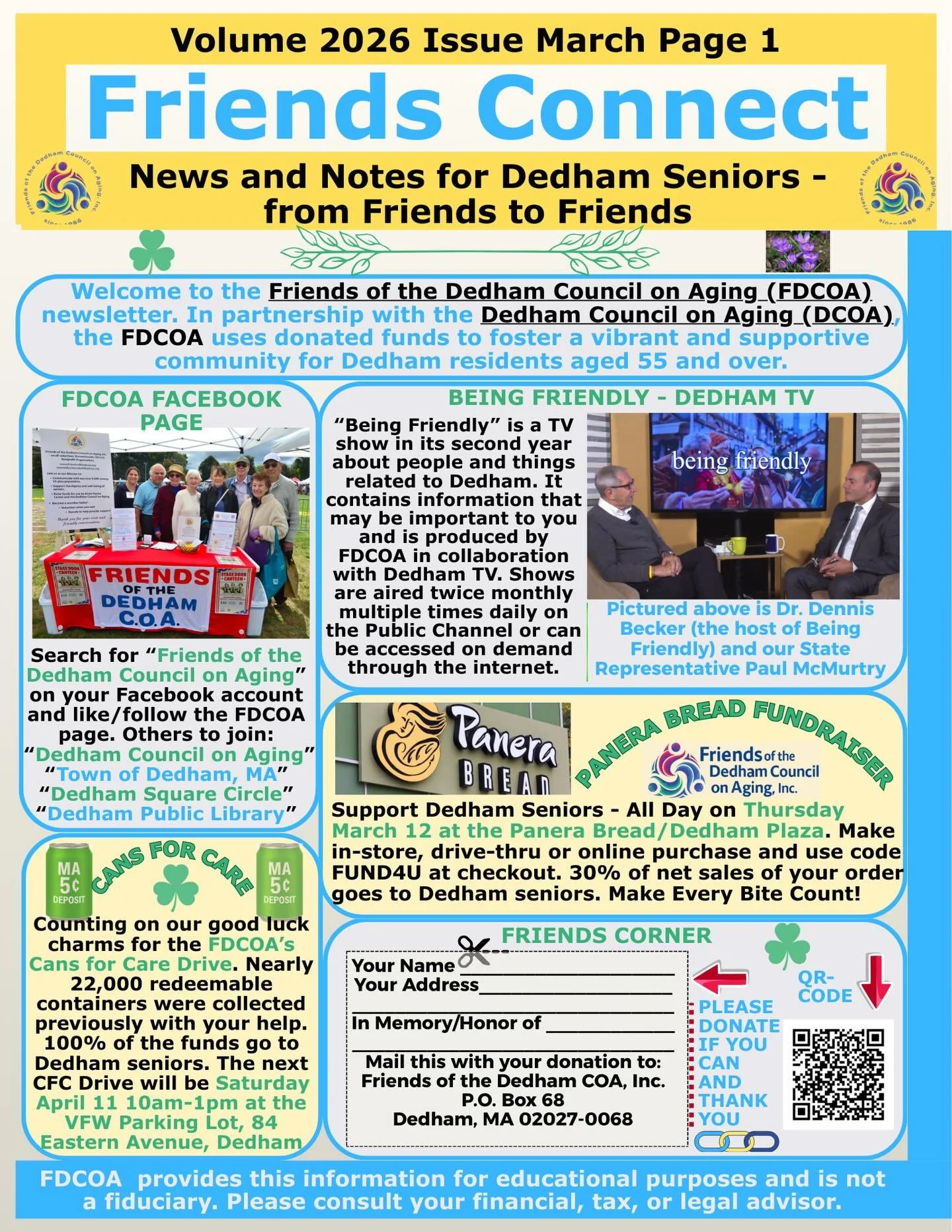 View fullsize Friends of the Dedham Council on Aging March newsletter #friends #together #happy #dedham #seniors