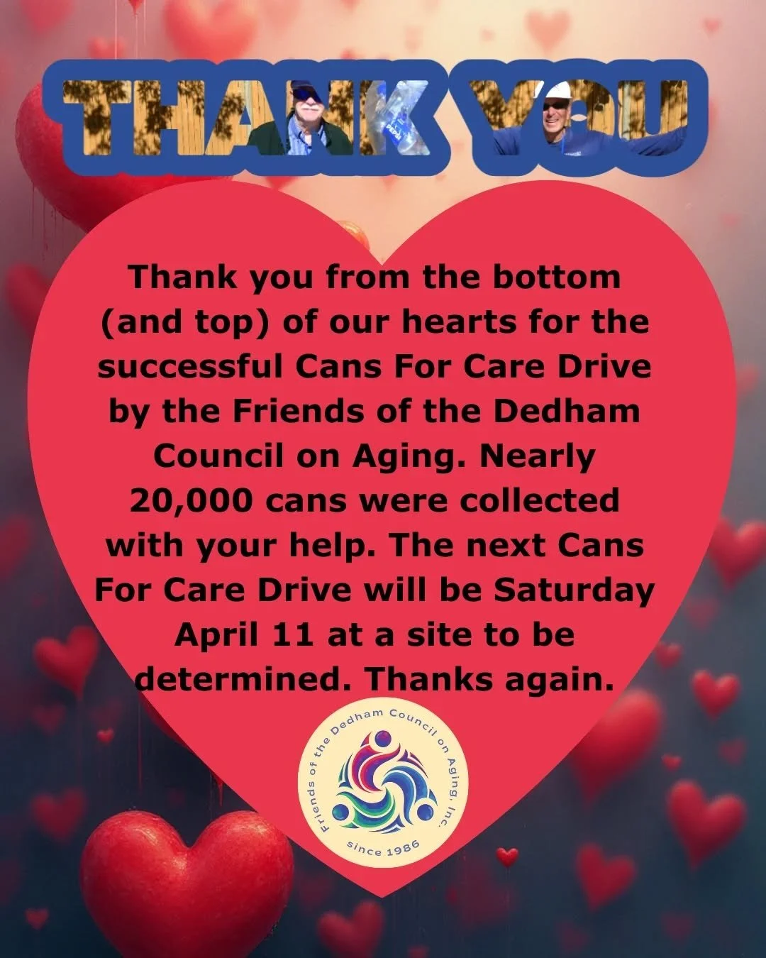 View fullsize Thank you from the Friends of the Dedham Council on Aging.❤️#thankyou #heart #cansforcare